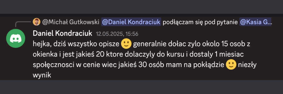 Dzisiaj prowadzę 3 społeczności – 2 dla producentów muzycznych i jedną biznesową. Zrzeszają one ponad 80 osób. To bardzo stabilny biznes który przynosi miesięcznie ok. 15 tys zł. i który nie zajmuje mi więcej niż 3 dni pracy w tygodniu.